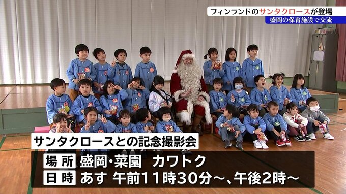 この取り組みは盛岡のデパート、カワトクが毎年この時期にフィンランド商工会議所公認のサンタクロースを招待しているもので、この日は盛岡市内の保育施設など3か所を訪問しました。
