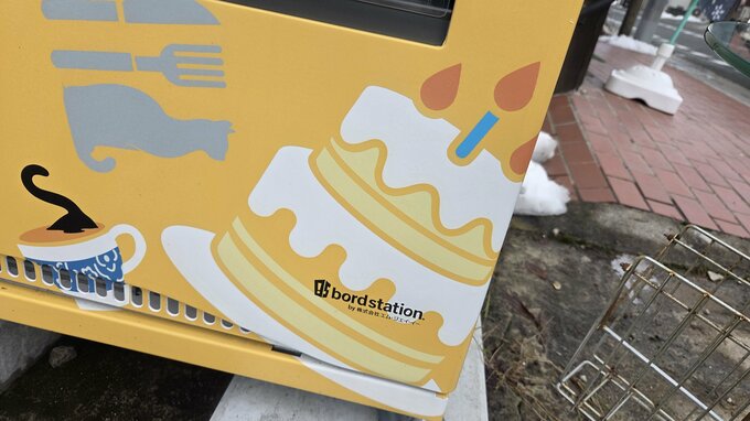 雫石町のメインストリートに現れた、見て楽しくなる黄色いデザインの自販機。