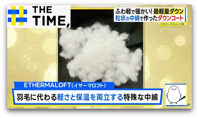 「通常はダウンパックを使うことが多いが、ダウンパックを使わずETHERMALOFT®(イサーマロフト)という中綿を使っている」