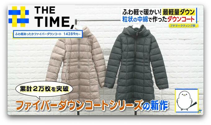 累計2万枚を突破した人気シリーズの「ファイバーダウンコート」から新しく登場したのは、「ふわ軽あったかファイバーダウンコート」(1万4289円~)。