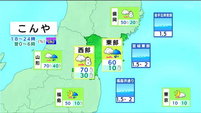 東部では雨が降り、雪が混じる所もあるでしょう。西部は雪や雨となり、峠道は積雪となる見込みです。車の運転は、スリップに注意してください。