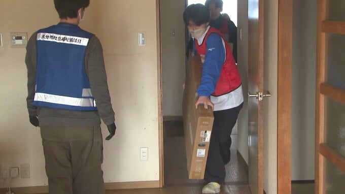大分市社会福祉協議会や地元のボランティアら15人ほどが参加して、入居予定の2部屋にオーブンレンジや炊飯器といった日常で使う生活家電を運び込みました。また、今後の入居に備えて9部屋分の家電製品を空き部屋に一時保管しました。