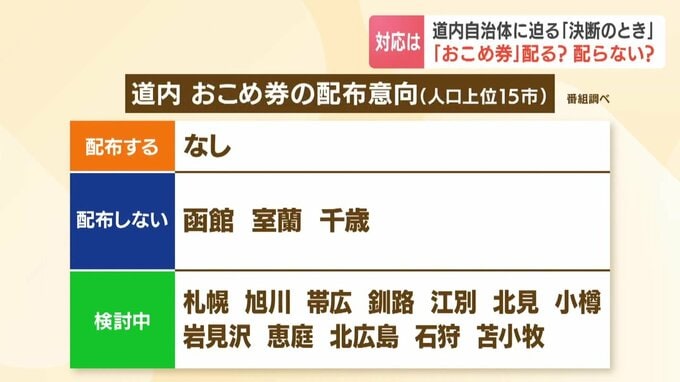 HBCが北海道内で人口の多い上位15の市へ聞き取りをしたところ、「配布する」と決めた自治体はゼロでした。