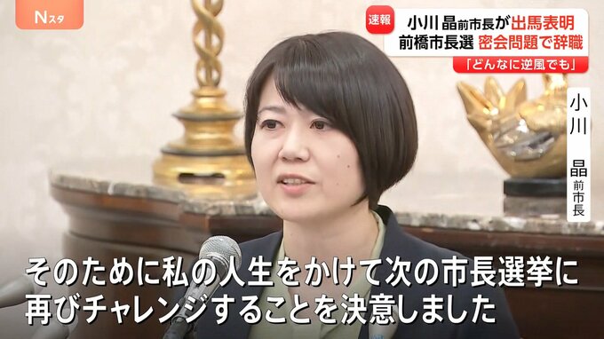 部下の既婚男性との“ホテル密会”問題で辞職した前橋市の小川前市長が、来年1月に行われる出直し市長選挙に立候補することを表明しました。小川晶 前市長「どんなに逆風でも、どんなに苦しくても、もう一度皆さ…