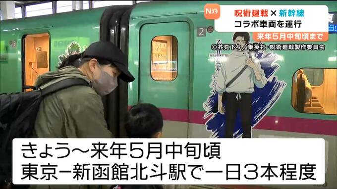 「呪術廻戦」とコラボした車両は、17日から2026年5月中旬頃まで、東北・北海道新幹線の東京駅と新函館北斗駅の間で、一日3本程度運行します。