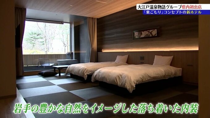 ホテルは、岩手の豊かな自然をイメージして全体的にアースカラーを基調とした落ち着いた内装となっています。