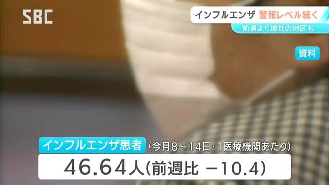 長野県内のインフルエンザの感染者は前の週より減少しましたが、県は、警報レベルを上回っているとして感染予防を呼びかけています。