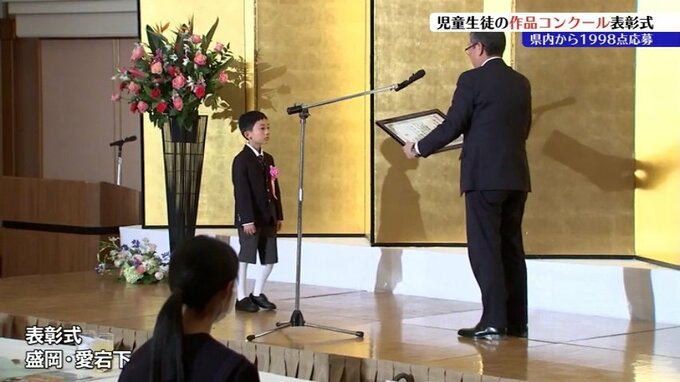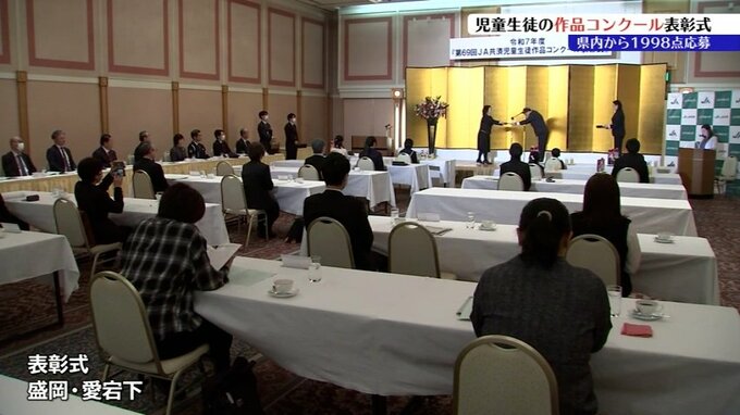 岩手県内7つのJAとJA共済連岩手が主催する、小中学生による作文や絵画などの作品コンクールの表彰式が17日、盛岡市で行われました。