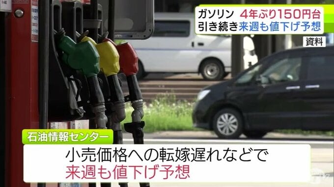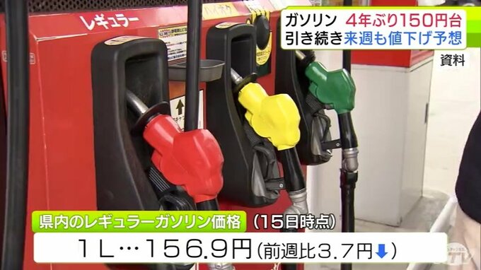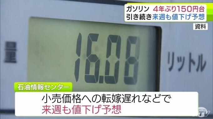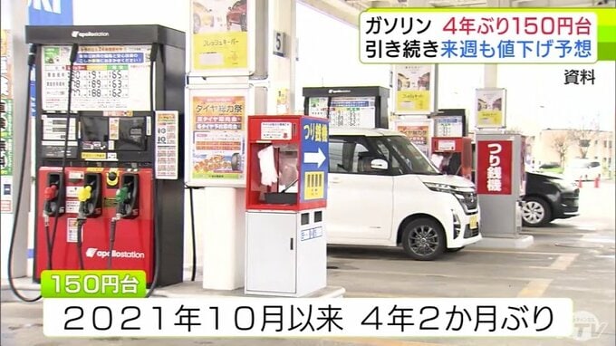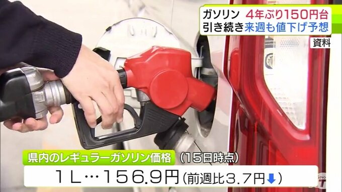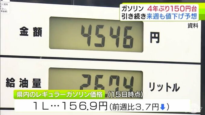 ガソリン価格が4年2か月ぶりに150円台に 青森県内のレギュラーガソリンの価格 1リットルあたり平均156.9円で先週より3.7円の値下がり 石油情報センターは来週も「値下げ」を予想 青森テレビ 2025年12月17日(水) 21:05 国内