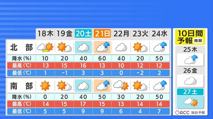 金曜日にかけて高気圧に覆われ晴れますが、週末はすっきりせず、土曜日の午後から日曜日にかけて雨が降りやすくなる見込みです。