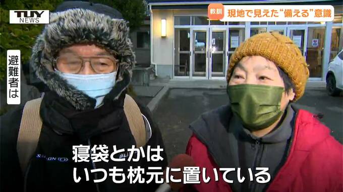 避難者「寝袋とかはいつも枕元に置いている。普段から持っていく懐中電灯や寝袋を枕元に置かないとダメだなと思いました」