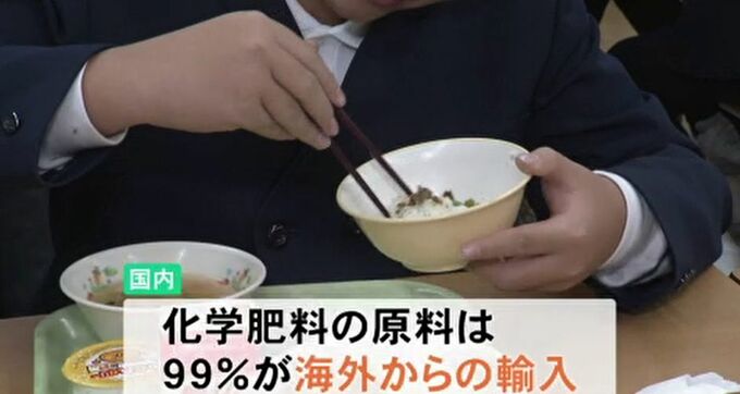 舘さんによりますと現在、国内で使われている化学肥料の原料は99%が海外からの輸入に依存。