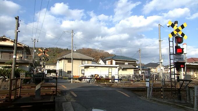 JR大安寺駅西側の踏切付近【画像③】ではないかと考えた西脇さんは、踏切方向を確認すると、非常ブレーキで停止した列車と、踏切内で立ち尽くす高齢男性を発見。