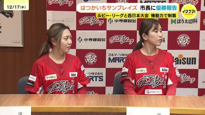 女子硬式野球チームはつかいちサンブレイズが廿日市市役所を訪れ、大会での優勝を報告しました。