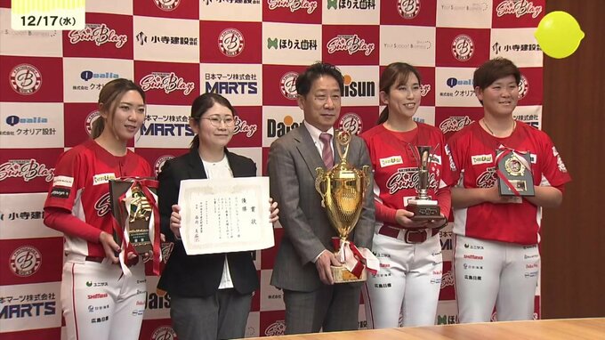松本市長はサンブレイズの活躍に触れ、「男女共同参画社会についてみんなで考えられる街にしていきたい」と話しました。坂東投手と村松選手は、今シーズンで引退し、来シーズン新たに7人の選手が加入するということです。
