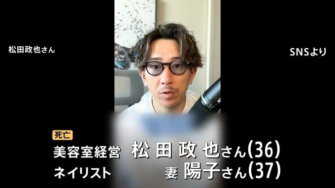 死亡したのは松田政也さん(36)と妻の陽子さん(37)