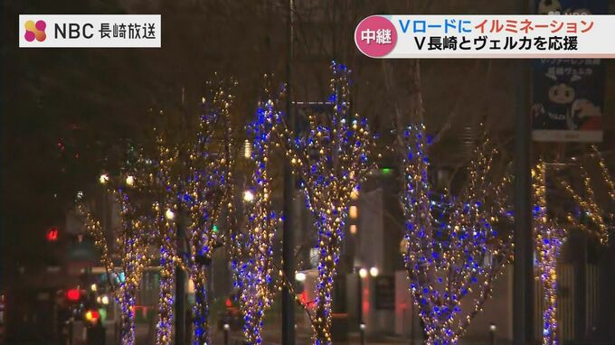 長崎の夜に、新たな光のスポットが誕生しました。場所は、NBC本社ビルの前を通る「Vロード」と名付けられた浦上川沿いの遊歩道です。長崎駅から「長崎スタジアムシティ」へと続く約500メートルの区間。現在、鮮やかなイルミネーションが施されています。