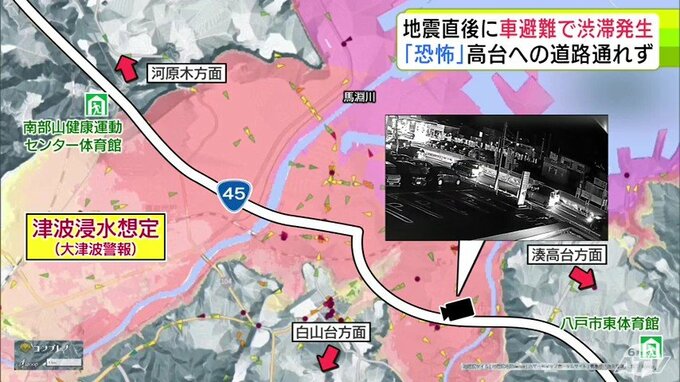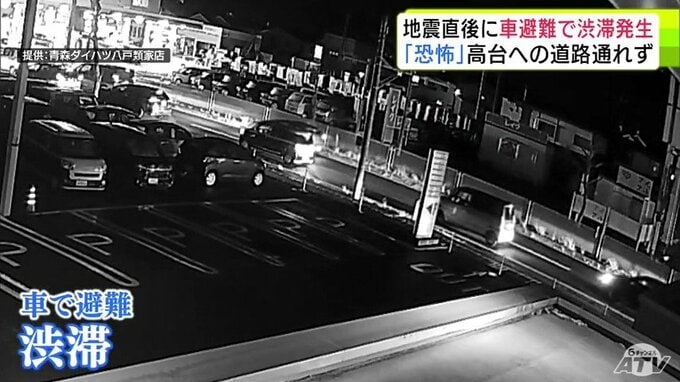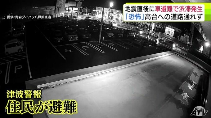 「津波警報」が発表され、沿岸部の住民が避難しました。そのさいに、多くの人が車を使ったと見られ、真夜中にも関わらず渋滞が発生します。その様子を自動車販売店の防犯カメラが捉えていました。