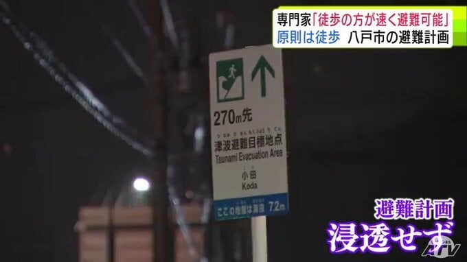 車での避難は、東日本大震災で大きな課題となっていました。宮城県気仙沼市では、大津波警報が発表されるなか、渋滞が発生して混乱が起きました。こうした課題を踏まえ、八戸市は津波が発生した時は原則、徒歩で避難するよう定めています。車で避難できるのは、海や川沿いに住んでいて、ゆっくりとしか歩けない人です。ただ、津波に関する避難計画は現時点では、八戸市民に浸透しきってはいないようです。