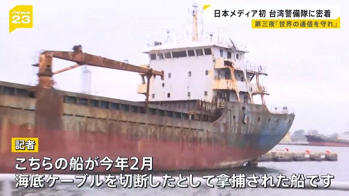 「こちらの船が2025年2月、海底ケーブルを切断したとして拿捕された船です。外壁は完全に錆びついていて、かなり古い船です」