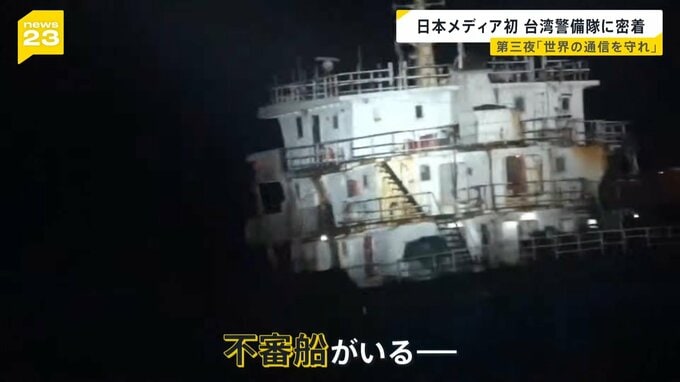 暗闇のなかで照らされる船体。「不審船がいる」と通報を受け、駆けつけた沿岸警備隊。