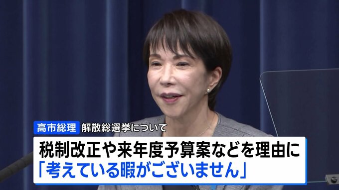 高市総理はきのう(17日)、臨時国会の会期末にあたって記者会見に臨み、衆議院の解散・総選挙については「考えている暇がございません」と答えました。高市総理「令和8年度の税制改正や当初予算の取りまとめなど…
