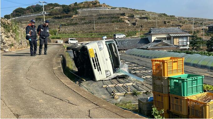 【速報】長崎県雲仙市で重体事故 横転車両内に男性1人 長崎放送 2025年12月18日(木) 10:10 国内 畑に横倒しになった軽トラック 男性が乗っていた軽トラックは、道路脇の畑に横転していたということで 警察が、詳しい事故の状況を調べています。