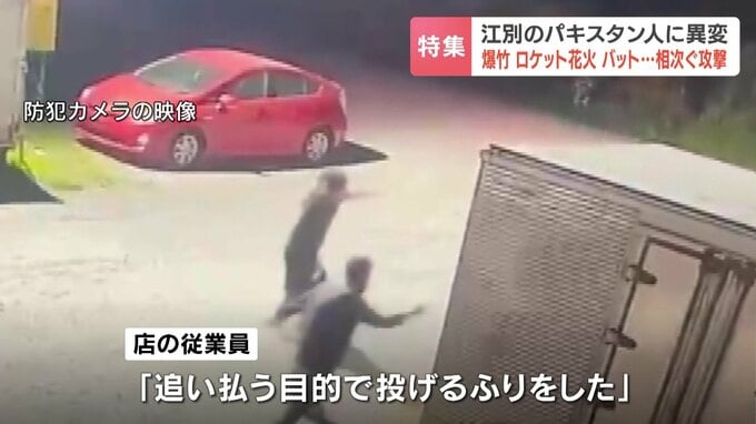 店の従業員によりますと、実際に石は投げておらず、追い払う目的で投げるそぶりをしただけだということです。