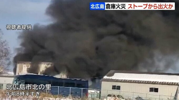 18日朝、北海道北広島市にある会社の倉庫から火が出ました。ストーブから出火したとみられています。
