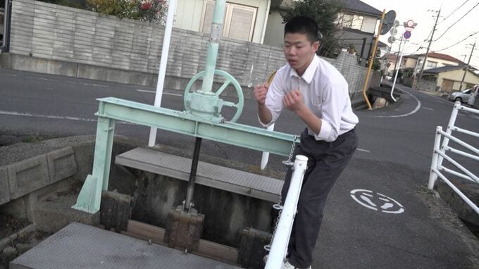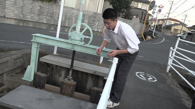用水路に転落した男性を見た2人は、とっさの判断で救出に動きました。