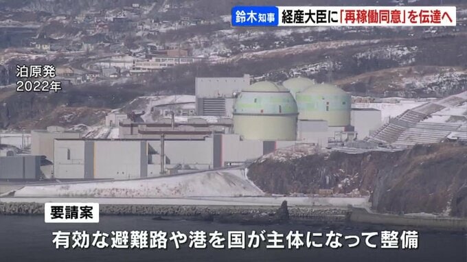 泊原発3号機の再稼働をめぐり、鈴木知事は18午後、経済産業省などを訪れ再稼働への同意を正式に伝達するとともに、避難路の整備などについて国に要請する方針です。