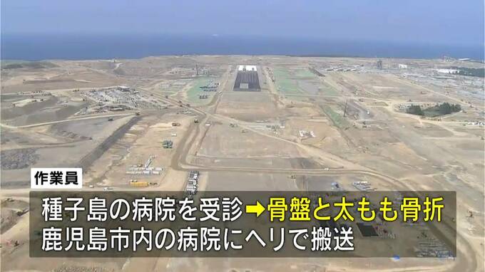 自衛隊基地整備が進む馬毛島で、電線工事をしていた作業員1人が崩れてきた土砂に巻き込まれ、骨盤などを折る大けがをしました。