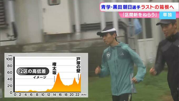 「気候条件がよければ区間新記録を」と、力強い言葉が出ました。実は箱根の2区、後半にかなりの登り坂があります。黒田選手は、青学の坂道タイムトライアルで6連覇を果たすほど、「登りに強い」のです。