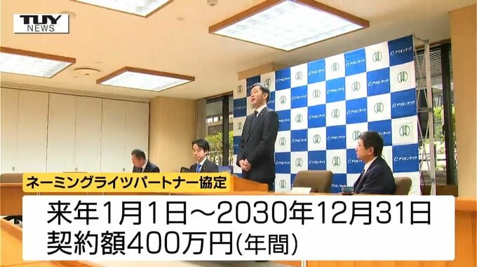 更新された契約の期間は来年1月1日から2030年12月31日までの5年間で、契約額はこれまでと同額の年間400万円です。