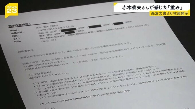 一方、赤木さんの問題意識が垣間見えるメールも...