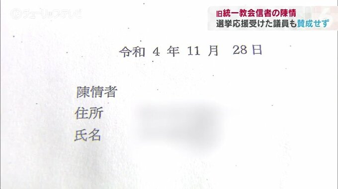 教団の信者を名乗る富山市民が先月28日に提出した陳情書…。