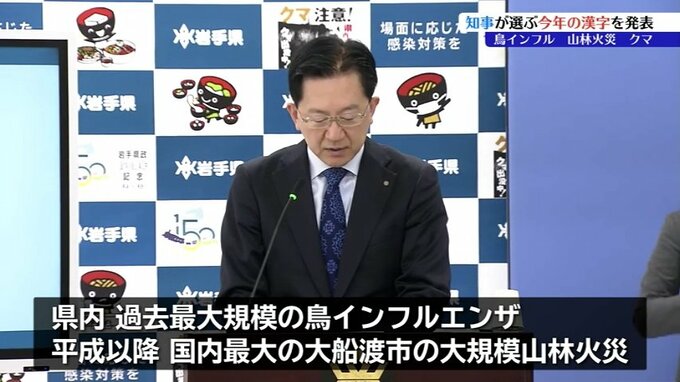 年の初めに相次いだ県内で過去最大規模の鳥インフルエンザや、平成以降国内最大の延焼範囲となった大船渡市の大規模山林火災、過去最多の出没件数を記録したクマの問題などを理由に挙げました。