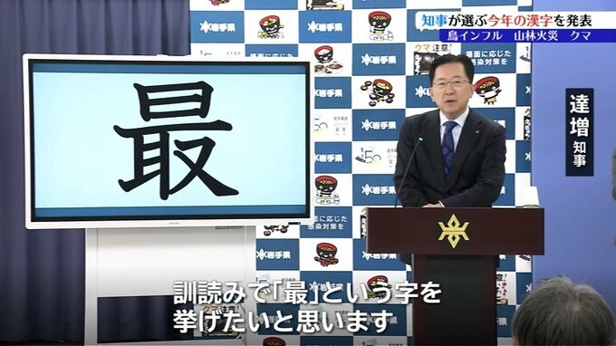 達増知事は18日の定例会見で、2025年を年を象徴する漢字を「最」と発表しました。