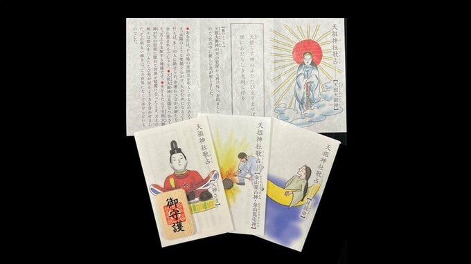 平野:明治神宮のおみくじ「大御心」は明治天皇の御製と昭憲皇太后の御歌によるおみくじで、人生の教訓が示されています。東京・高円寺の気象神社には、運勢を「晴れ」や「雪」といった天気で表現する「照照みくじ」があります。また、私が関わっている東京・板橋区ときわ台の「天祖神社歌占」や埼玉県の武蔵野坐令和神社の「千年和歌みくじ」も吉凶がありません。「天祖神社歌占」は弓の弦に結ばれた短冊から1枚を引いて神さまと御縁結びできる、お守りになる和歌みくじです。「千年和歌みくじ」は、『万葉集』から現代短歌まで、1000年以上の歴史の中から選ばれた和歌を、イラストレーターの睦月ムンクさんによる美しいイラストとともに味わえます。どちらも成蹊大学の学生・大学院生とともに制作に協力したおみくじです。
