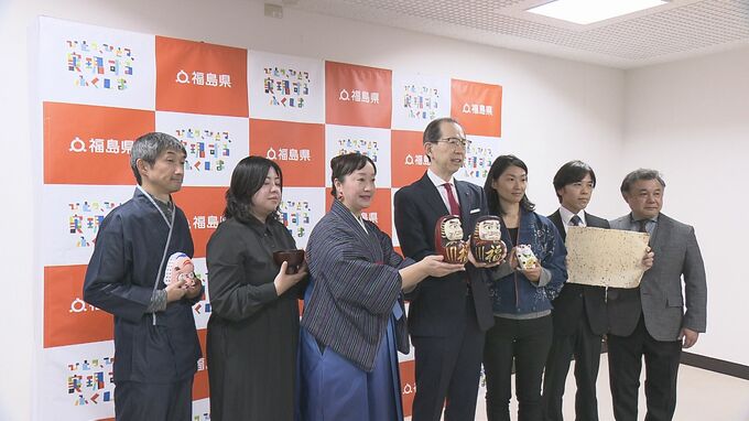 18日、内堀知事を訪ねたのは、郡山市在住の書道家・千葉清藍さんなど、県内の工芸関係者6人です。