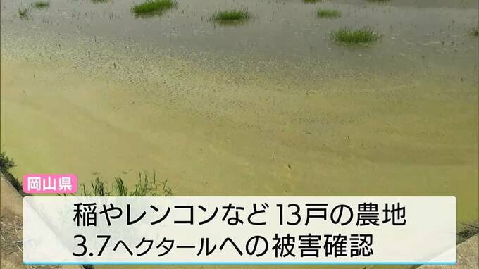岡山県は、稲やレンコンなどを育てる13戸の農地、3.7ヘクタールへの被害を確認し、この原因は、海水の流入による塩害だとして損害賠償を行う方針であることがわかりました。