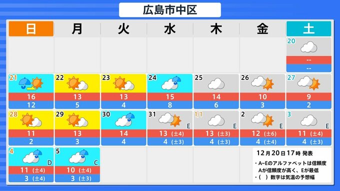 【1か月予報】年末年始の天気は?日本全域で平年より気温が高い見込み 「降水量」は北~東日本太平洋側では多い予報 「降雪量」&「日照時間」はどうなる【気象庁発表】 RSK山陽放送 2025年12月18日(木) 16:21 国内 天気 札幌・仙台・東京・名古屋・大阪・広島・福岡・那覇の16日間天気予報をみる 【画像⑧~⑮】は札幌・仙台・東京・名古屋・大阪・広島・福岡・那覇の16日間天気予報です。 【画像⑧】 【画像⑨】 【画像⑩】 【画像⑪】 【画像⑫】 【画像⑬】 【画像⑭】 【画像⑮】 【画像⑮】 ▶ 1か月予報 日本全域で平年より気温が高い見込み この記事を最初から読む