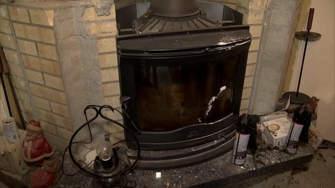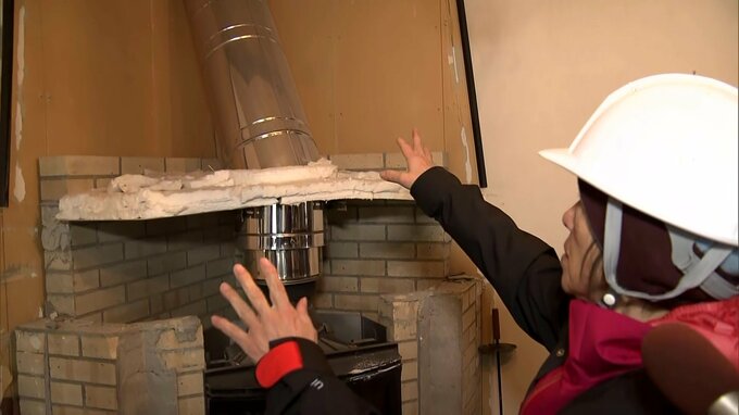 暖炉や近くの棚も崩れて、生活スペースである部屋は歩けないほどの状態だったと佐々木さんは言います。