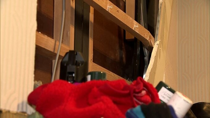 「もちろん冷蔵庫とか、全部開いて倒れてっていうのもですけれども、私が一番見てほしいのは、鉄骨が曲がったこと。柱も鉄骨も補強もいかれているかもしれないであるとか…いろいろ…。なんかもう、(ここに)住めないっていうのが…」