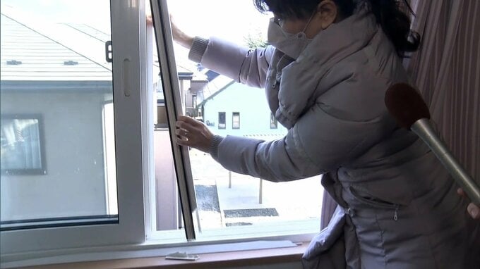 女性の娘の部屋の窓も地震の影響で壊れていました。