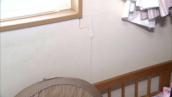 「(娘の部屋は)窓の鍵をしていなかったんですね。それで、地震後に見たら、娘の部屋の窓が開いてたんですよ。たぶん揺れで全開になって…。それで、(窓の)『さん』が壊れてた。(『さん』に残る)亀裂が物語っているんですけれども…。地震が終わったあとに気づいて…。鍵をしていれば、こんなにならなかったのかなって…。ここ(窓の近くの壁)にも亀裂が入っているし…」