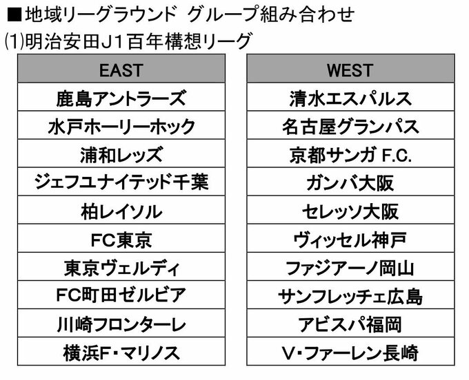 12月15日に発表されたグループ分けとともに、J1の「地域リーグラウンド」と「プレーオフラウンド」の仕組みを以下に示しています。