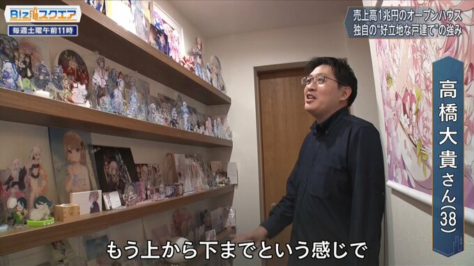 廊下の壁一面には、VTuber(バーチャルYouTuber)のグッズが飾られ「毎日目にする所なので、ここを見ながら『今日も会社頑張るぞ』と出かける」と話す。