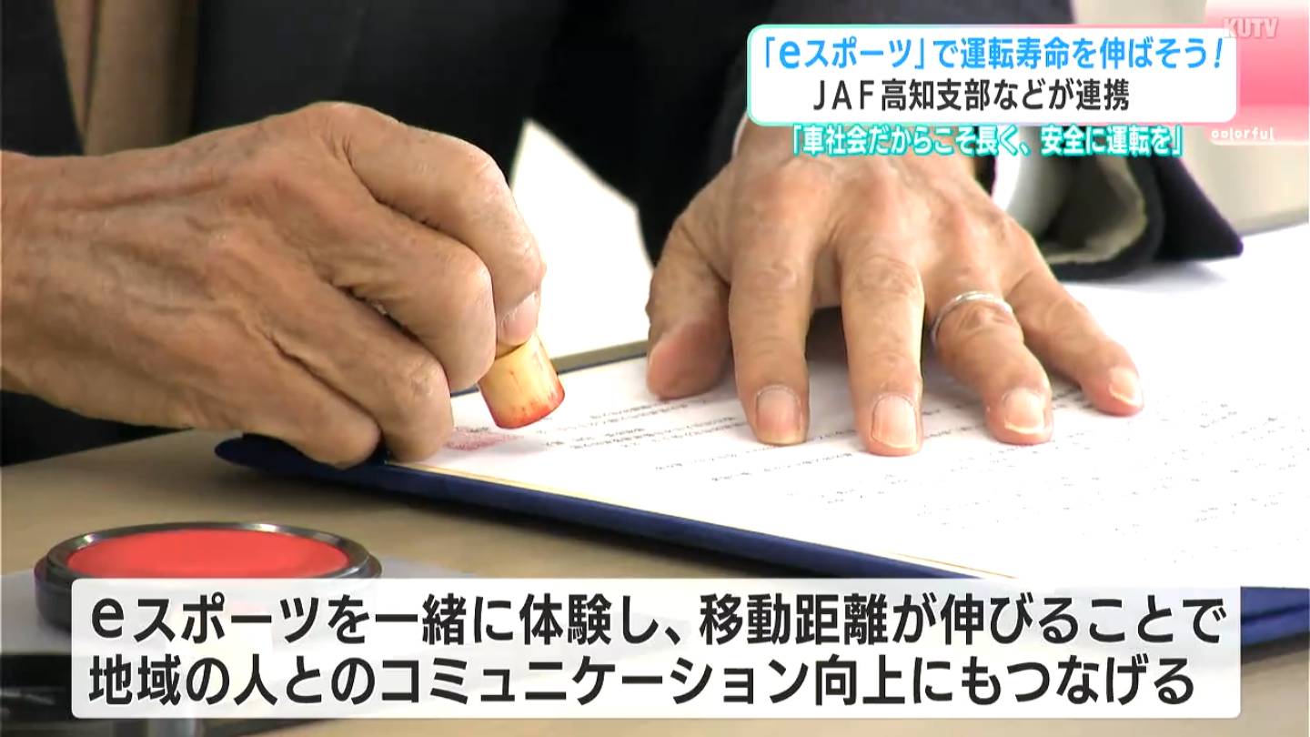 「eスポーツ」で高齢ドライバーの“運転寿命”を伸ばそうと、JAF高知支部と、損害保険会社、そして大学の3者が、それぞれ協定を結びました。