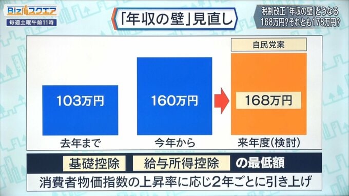政府与党案は、基礎控除と給与所得控除の非課税額を「直近2年間の物価上昇率」をもとに2年に1回引き上げ、26年度の税制改正で168万円に引き上げる方向で調整しているが、178万円を目指す国民民主からは…